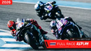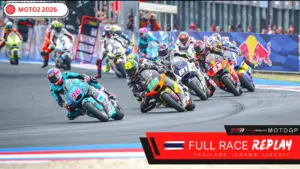 The Moto3 2026 Thailand Grand Prix full race replay allows fans to stream the complete race video in HD. Known for pack racing and unpredictable finishes, Moto3 at Buriram guarantees non-stop overtaking from start to finish. Every lap of this Moto3 2026 full race replay showcases rising stars fighting for early championship points.